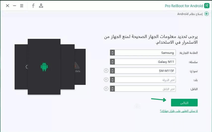 - قم بإدخال كافة معلومات الجهاز الخاص بك وانقر على التالي.