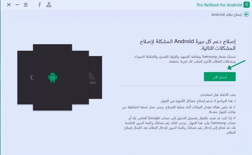 - انقر على إصلاح نظام أندرويد.